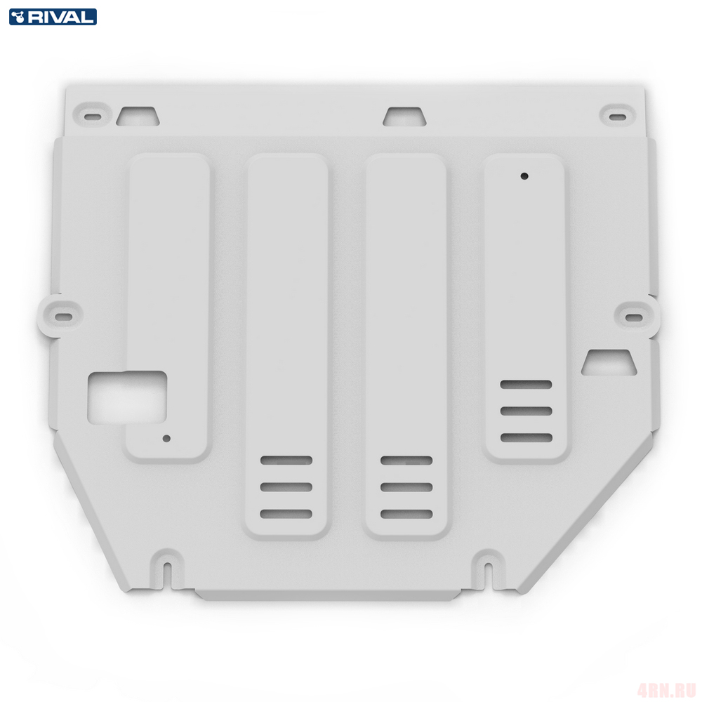Защита Rival произведена из высококачественного алюминия. Она надежно предохраняет днище вашего автомобиля от различных повреждений при наезде на бордюры, выступающие канализационные люки, кромки поврежденного асфальта или при ремонте дорог.
