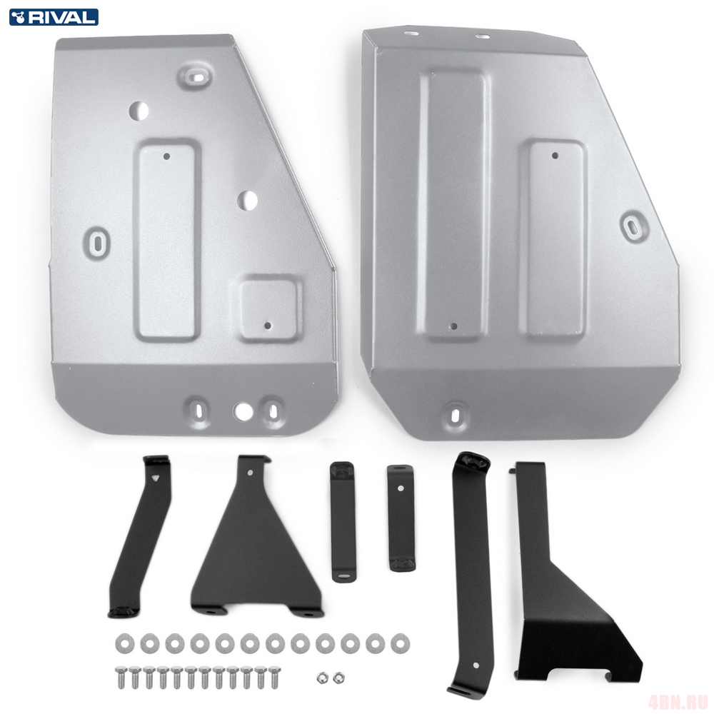 Стойкое порошковое окрашивание позволяет сохранить внешний вид, защитит от царапин, предотвратит коррозию. Также имеется утопленный крепеж для предотвращения срывов. Крепеж не образует с алюминием гальваническую пару. Защита спроектирована индивидуально для автомобиля, что позволяет устанавливать ее в штатные места без доработки кузова за 10 мин.