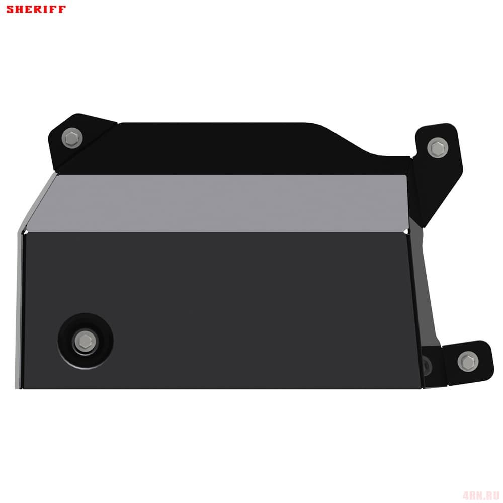 Защита картера Sheriff нужна для сохранности узлов и агрегатов, находящихся на днище авто. Она надежно защитит двигательный отсек вашей машины от повреждений. Также она защищает моторный отсек от влаги, грязи, и предусматривает наличие металлических крыльев, которые выполняют функцию пыльника.