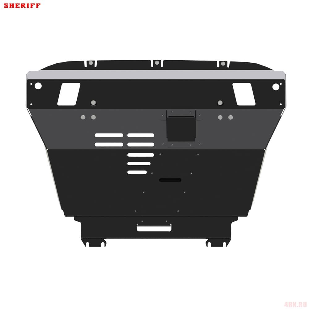 Защита картера Sheriff нужна для сохранности узлов и агрегатов, находящихся на днище авто. Она надежно защитит двигательный отсек вашей машины от повреждений. Также она защищает моторный отсек от влаги, грязи, и предусматривает наличие металлических крыльев, которые выполняют функцию пыльника.