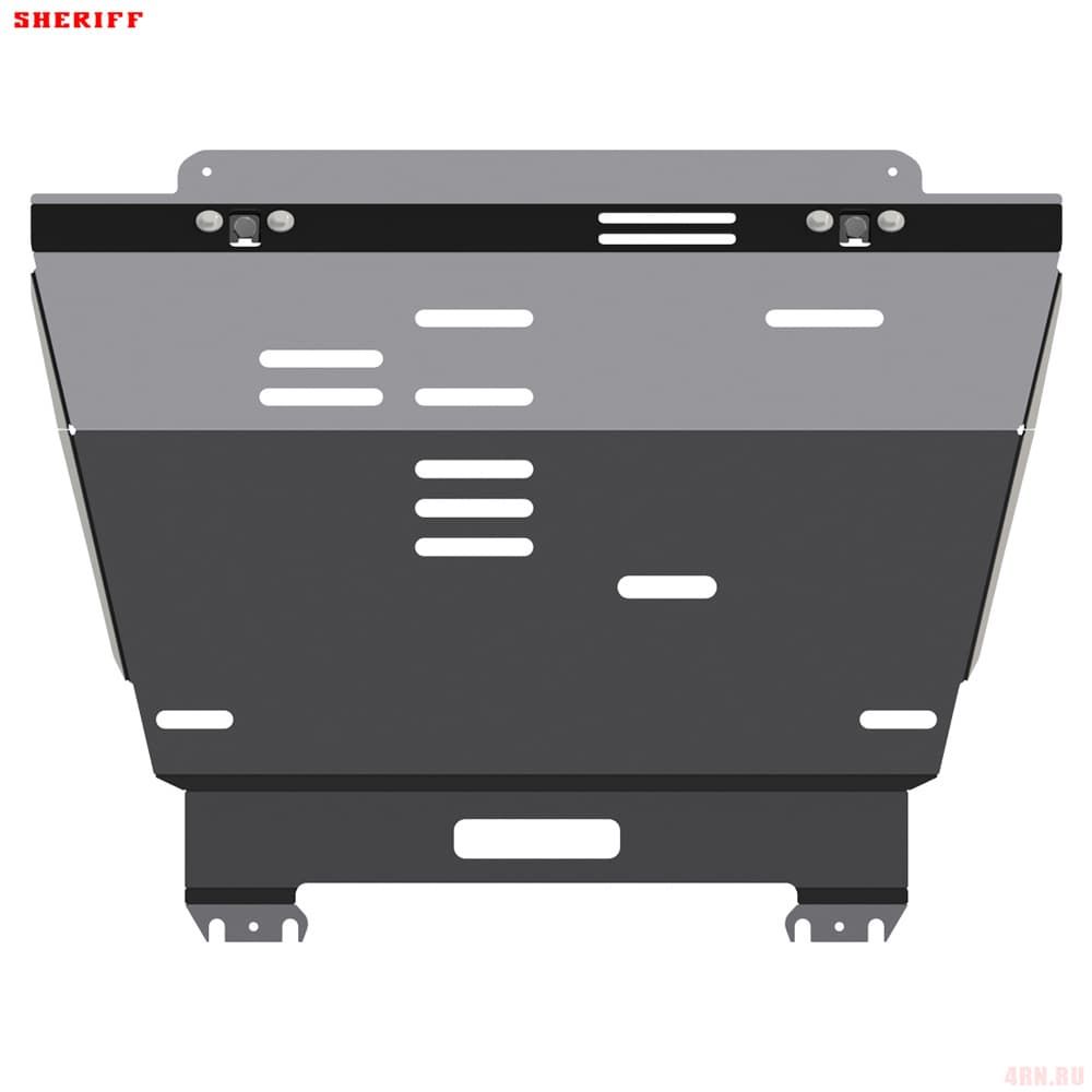 Защита картера Sheriff нужна для сохранности узлов и агрегатов, находящихся на днище авто. Она надежно защитит двигательный отсек вашей машины от повреждений. Также она защищает моторный отсек от влаги, грязи, и предусматривает наличие металлических крыльев, которые выполняют функцию пыльника.