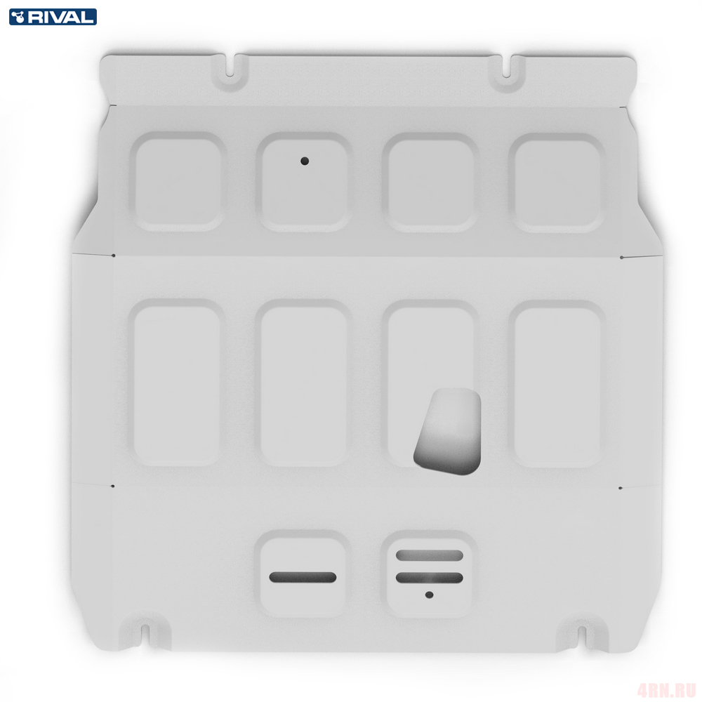 Защита Rival произведена из высококачественного алюминия. Она надежно предохраняет днище вашего автомобиля от различных повреждений при наезде на бордюры, выступающие канализационные люки, кромки поврежденного асфальта или при ремонте дорог.
