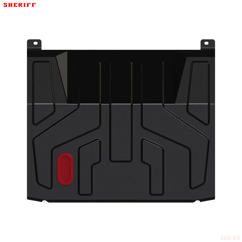 Защита картера Sheriff нужна для сохранности узлов и агрегатов, находящихся на днище авто. Она надежно защитит двигательный отсек вашей машины от повреждений. Также она защищает моторный отсек от влаги, грязи, и предусматривает наличие металлических крыльев, которые выполняют функцию пыльника.