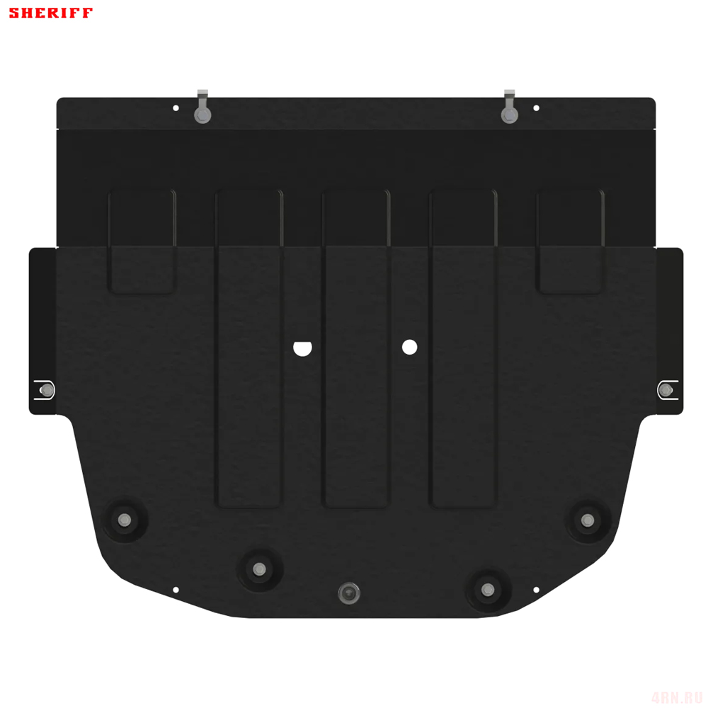 Защита картера Sheriff нужна для сохранности узлов и агрегатов, находящихся на днище авто. Она надежно защитит двигательный отсек вашей машины от повреждений. Также она защищает моторный отсек от влаги, грязи, и предусматривает наличие металлических крыльев, которые выполняют функцию пыльника.