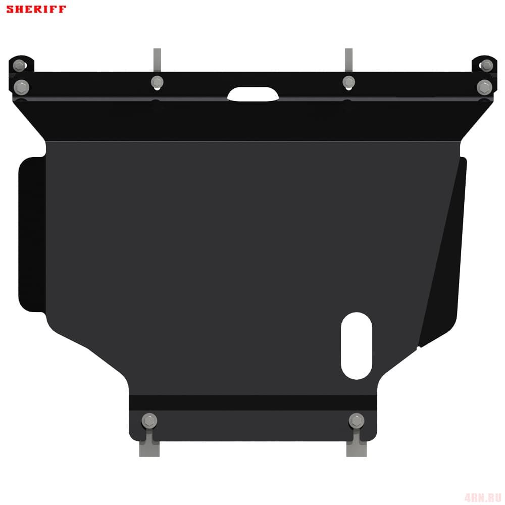 Защита картера Sheriff нужна для сохранности узлов и агрегатов, находящихся на днище авто. Она надежно защитит двигательный отсек вашей машины от повреждений. Также она защищает моторный отсек от влаги, грязи, и предусматривает наличие металлических крыльев, которые выполняют функцию пыльника.