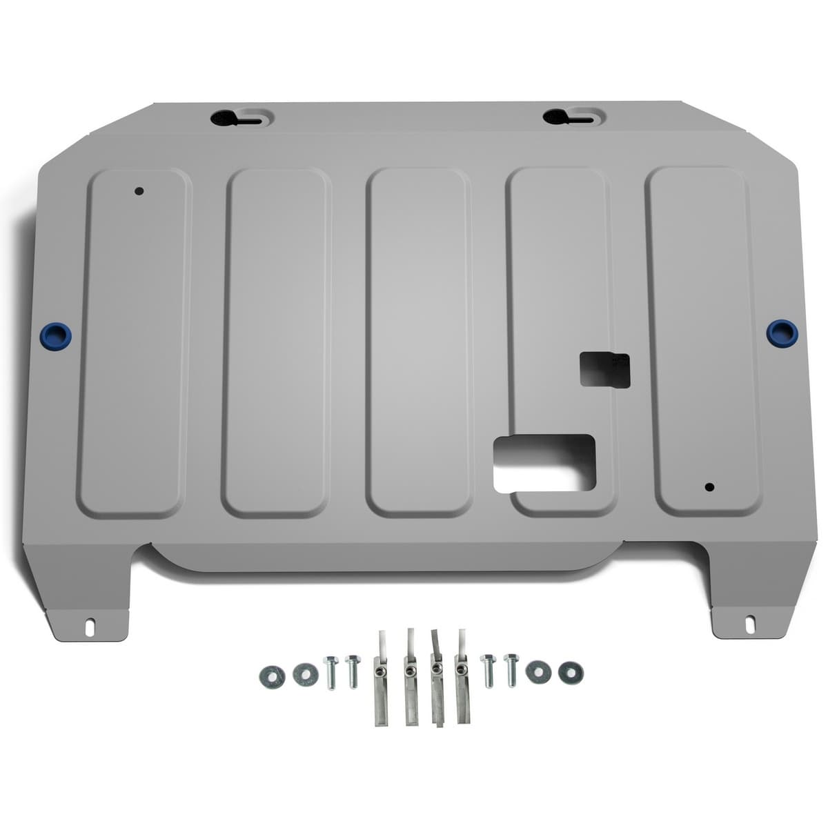 Стойкое порошковое окрашивание позволяет сохранить внешний вид, защитит от царапин, предотвратит коррозию. Также имеется утопленный крепеж для предотвращения срывов. Крепеж не образует с алюминием гальваническую пару. Защита спроектирована индивидуально для автомобиля, что позволяет устанавливать ее в штатные места без доработки кузова за 10 мин.