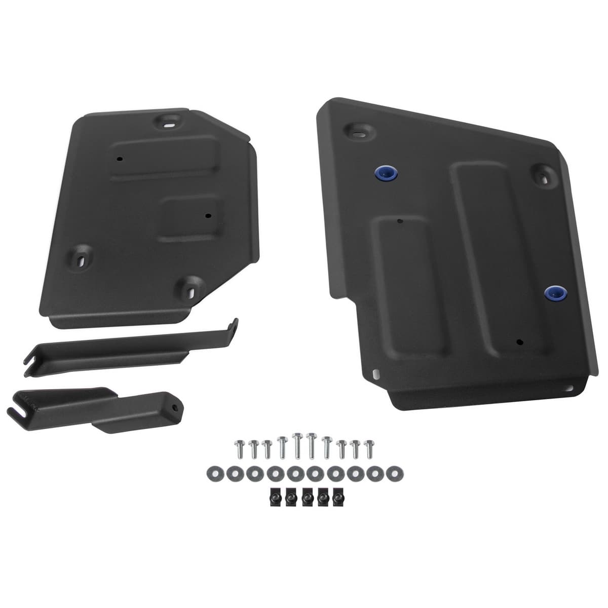 Порошковое окрашивание гарантирует долгий срок службы. А глубокий штамп увеличивает жесткость до 2,5 раз. Также имеется утопленный крепеж для предотвращения срывов. Качественная покраска защиты картера выдерживает 720 часов соляного тумана. Толщина изделия составляет 2-6 мм. Подштамповка в местах крепления предохраняет крепеж от срезания. Деталь спроектирована индивидуально для вашего автомобиля, что позволяет устанавливать ее в штатные места без доработки кузова за 10 мин.
