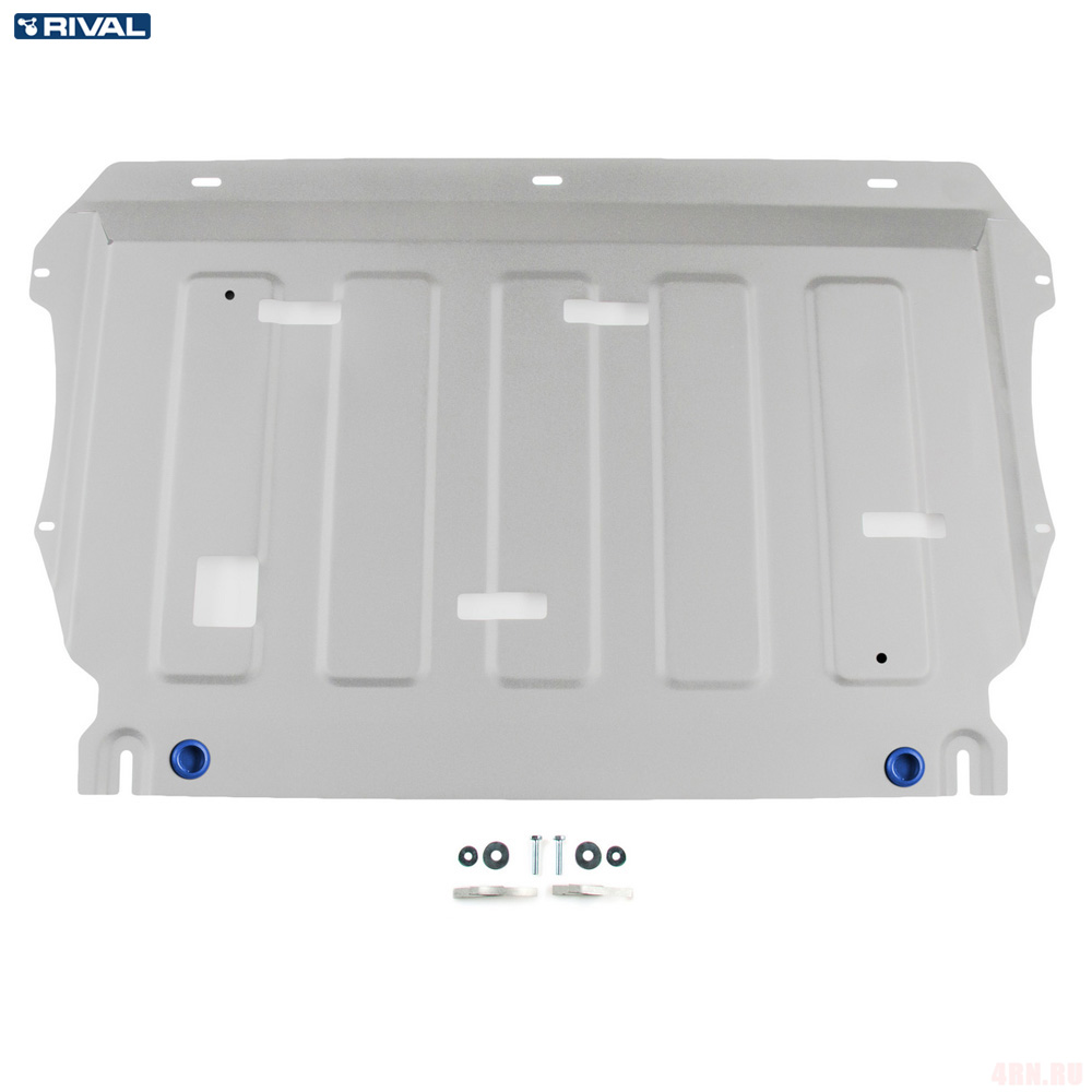 Защита Rival произведена из высококачественного алюминия. Она надежно предохраняет днище вашего автомобиля от различных повреждений при наезде на бордюры, выступающие канализационные люки, кромки поврежденного асфальта или при ремонте дорог.
