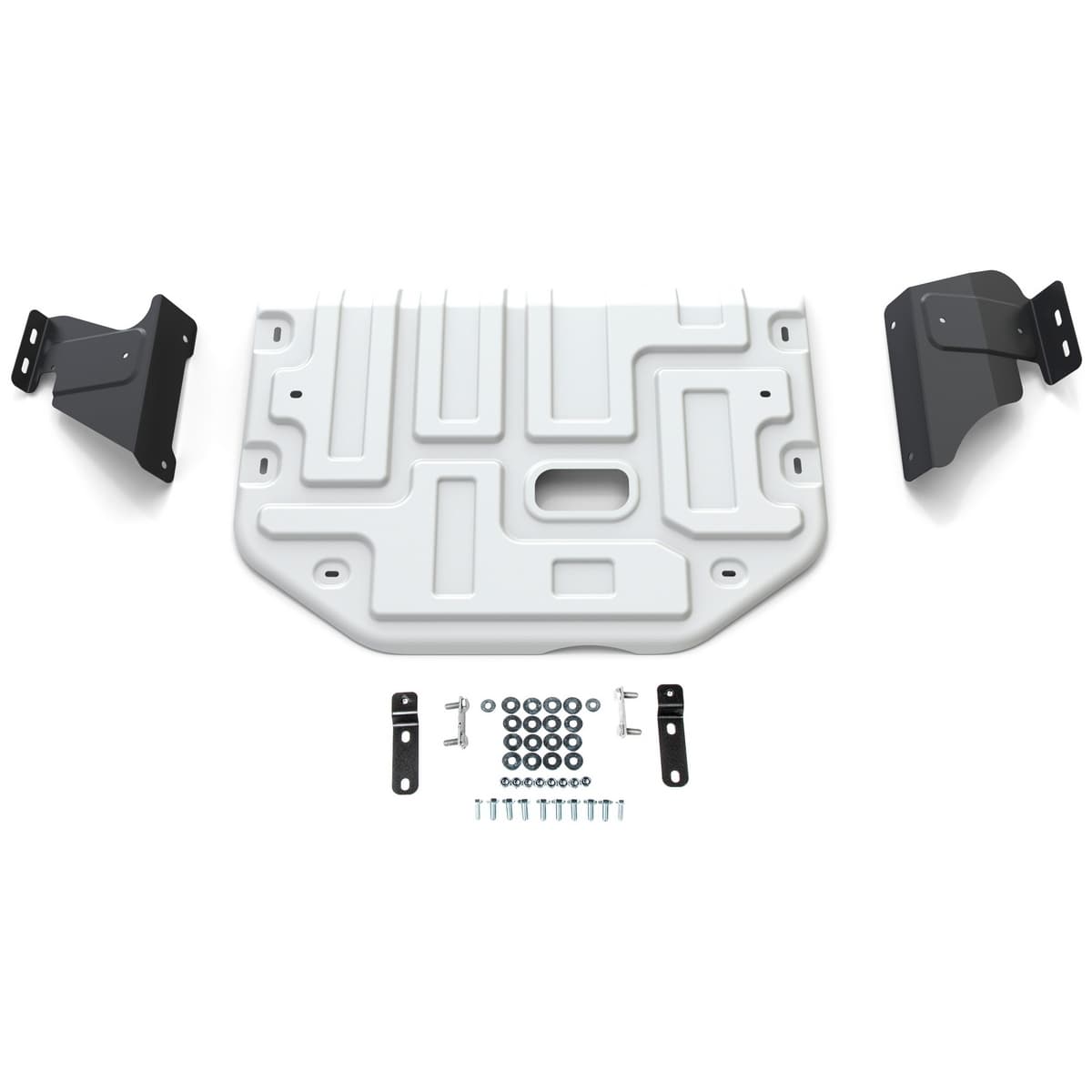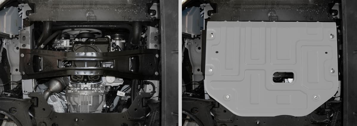 Стойкое порошковое окрашивание позволяет сохранить внешний вид, защитит от царапин, предотвратит коррозию. Также имеется утопленный крепеж для предотвращения срывов. Крепеж не образует с алюминием гальваническую пару. Защита спроектирована индивидуально для автомобиля, что позволяет устанавливать ее в штатные места без доработки кузова за 10 мин.