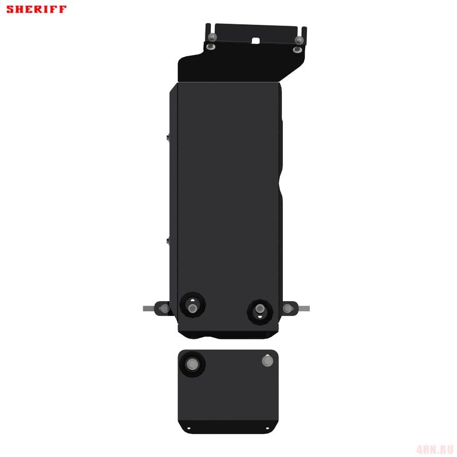 Защита картера Sheriff нужна для сохранности узлов и агрегатов, находящихся на днище авто. Она надежно защитит двигательный отсек вашей машины от повреждений. Также она защищает моторный отсек от влаги, грязи, и предусматривает наличие металлических крыльев, которые выполняют функцию пыльника.