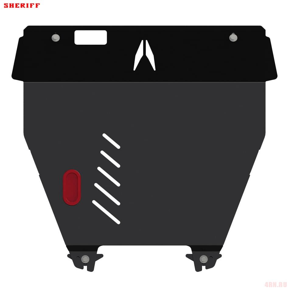 Защита картера Sheriff нужна для сохранности узлов и агрегатов, находящихся на днище авто. Она надежно защитит двигательный отсек вашей машины от повреждений. Также она защищает моторный отсек от влаги, грязи, и предусматривает наличие металлических крыльев, которые выполняют функцию пыльника.