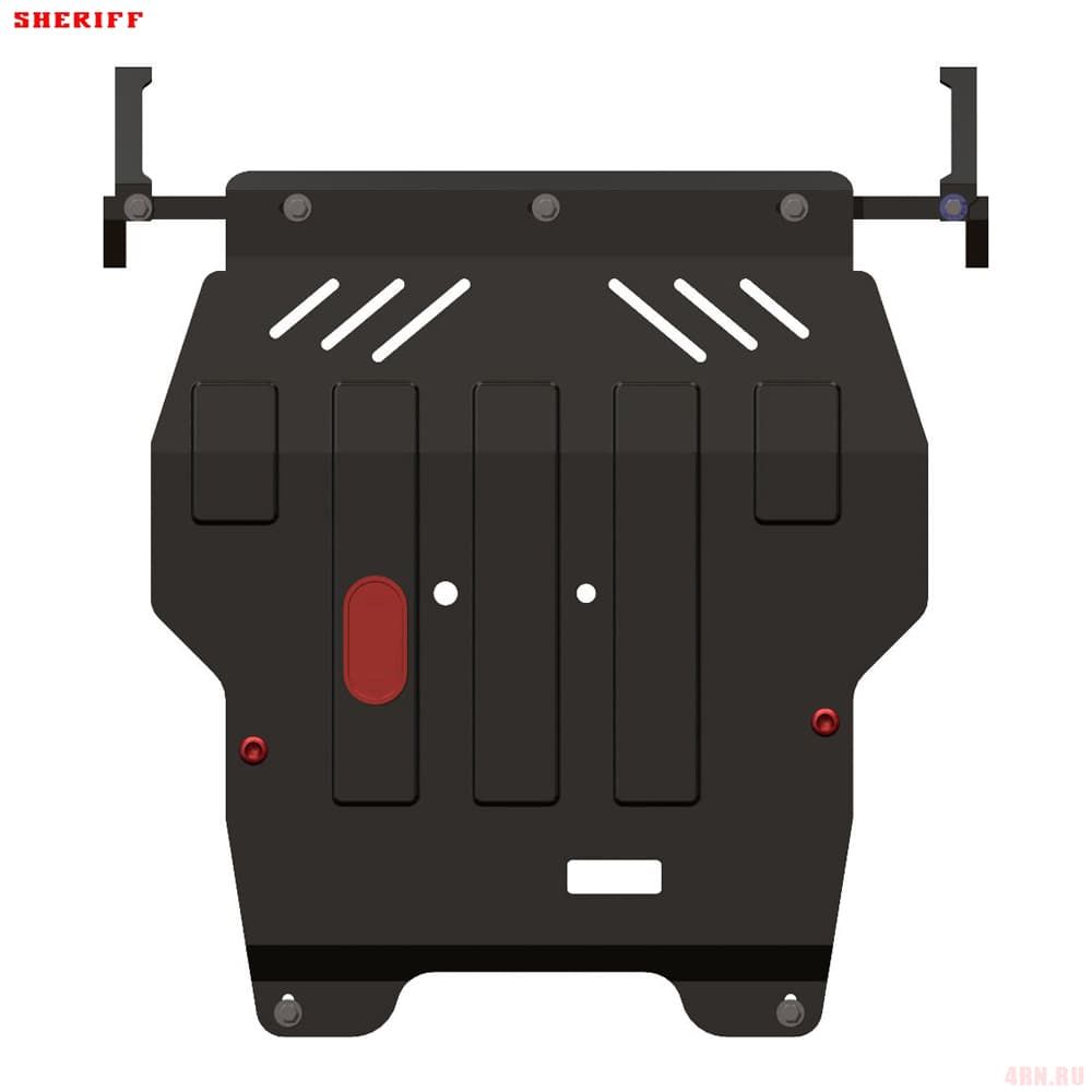 Защита картера Sheriff нужна для сохранности узлов и агрегатов, находящихся на днище авто. Она надежно защитит двигательный отсек вашей машины от повреждений. Также она защищает моторный отсек от влаги, грязи, и предусматривает наличие металлических крыльев, которые выполняют функцию пыльника.