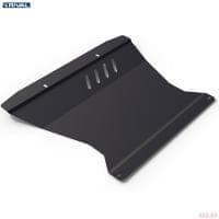 Порошковое окрашивание гарантирует долгий срок службы. А глубокий штамп увеличивает жесткость до 2,5 раз. Также имеется утопленный крепеж для предотвращения срывов. Качественная покраска защиты картера выдерживает 720 часов соляного тумана. Толщина изделия составляет 2-6 мм. Подштамповка в местах крепления предохраняет крепеж от срезания. Деталь спроектирована индивидуально для вашего автомобиля, что позволяет устанавливать ее в штатные места без доработки кузова за 10 мин.