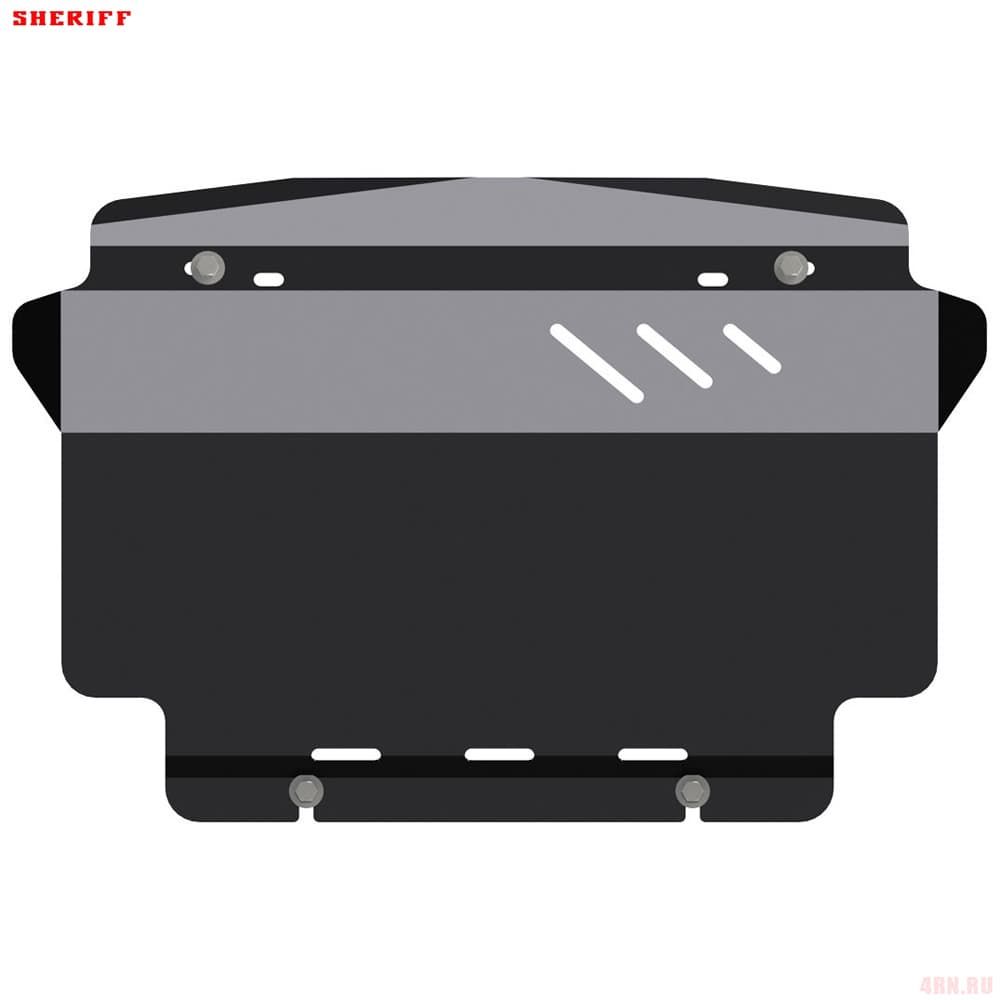 Защита картера Sheriff нужна для сохранности узлов и агрегатов, находящихся на днище авто. Она надежно защитит двигательный отсек вашей машины от повреждений. Также она защищает моторный отсек от влаги, грязи, и предусматривает наличие металлических крыльев, которые выполняют функцию пыльника.
