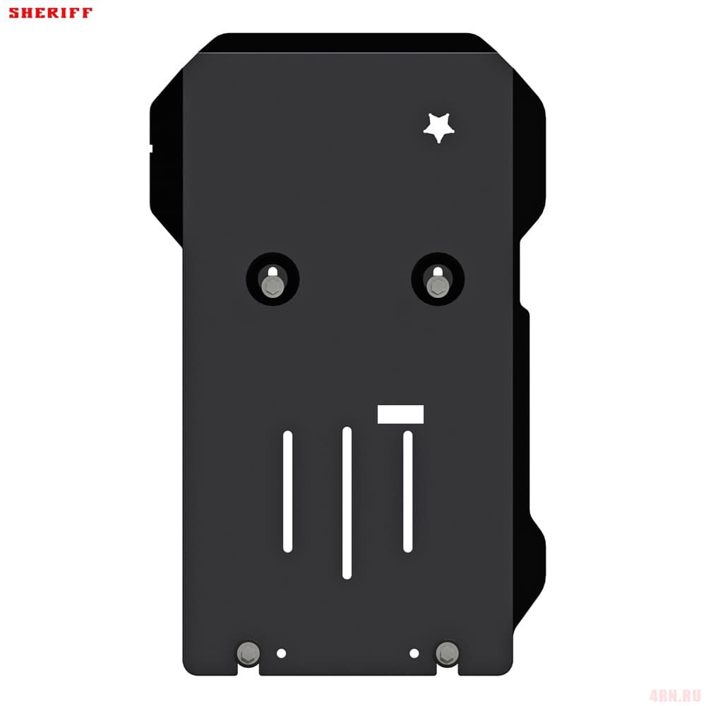 Защита картера Sheriff нужна для сохранности узлов и агрегатов, находящихся на днище авто. Она надежно защитит двигательный отсек вашей машины от повреждений. Также она защищает моторный отсек от влаги, грязи, и предусматривает наличие металлических крыльев, которые выполняют функцию пыльника.