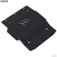 Порошковое окрашивание гарантирует долгий срок службы. А глубокий штамп увеличивает жесткость до 2,5 раз. Также имеется утопленный крепеж для предотвращения срывов. Качественная покраска защиты картера выдерживает 720 часов соляного тумана. Толщина изделия составляет 2-6 мм. Подштамповка в местах крепления предохраняет крепеж от срезания. Деталь спроектирована индивидуально для вашего автомобиля, что позволяет устанавливать ее в штатные места без доработки кузова за 10 мин.