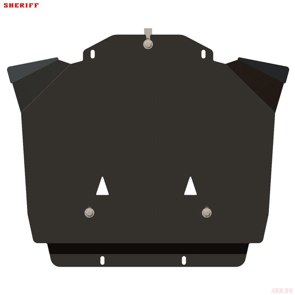 Защита картера Sheriff нужна для сохранности узлов и агрегатов, находящихся на днище авто. Она надежно защитит двигательный отсек вашей машины от повреждений. Также она защищает моторный отсек от влаги, грязи, и предусматривает наличие металлических крыльев, которые выполняют функцию пыльника.