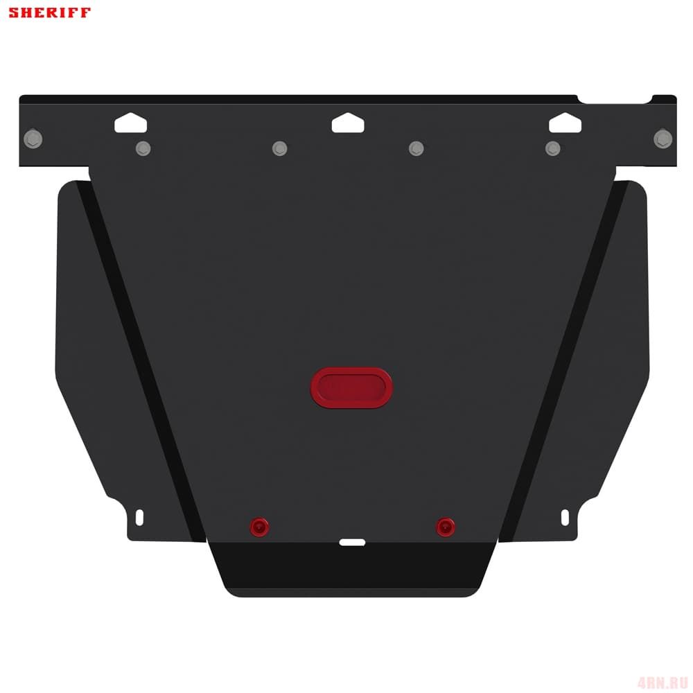 Защита картера Sheriff нужна для сохранности узлов и агрегатов, находящихся на днище авто. Она надежно защитит двигательный отсек вашей машины от повреждений. Также она защищает моторный отсек от влаги, грязи, и предусматривает наличие металлических крыльев, которые выполняют функцию пыльника.