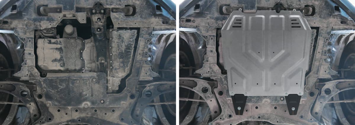 Стойкое порошковое окрашивание позволяет сохранить внешний вид, защитит от царапин, предотвратит коррозию. Также имеется утопленный крепеж для предотвращения срывов. Крепеж не образует с алюминием гальваническую пару. Защита спроектирована индивидуально для автомобиля, что позволяет устанавливать ее в штатные места без доработки кузова за 10 мин.