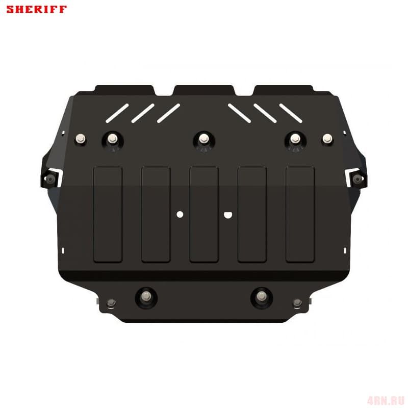 Защита картера Sheriff нужна для сохранности узлов и агрегатов, находящихся на днище авто. Она надежно защитит двигательный отсек вашей машины от повреждений. Также она защищает моторный отсек от влаги, грязи, и предусматривает наличие металлических крыльев, которые выполняют функцию пыльника.