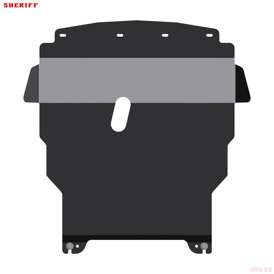 Защита картера Sheriff нужна для сохранности узлов и агрегатов, находящихся на днище авто. Она надежно защитит двигательный отсек вашей машины от повреждений. Также она защищает моторный отсек от влаги, грязи, и предусматривает наличие металлических крыльев, которые выполняют функцию пыльника.