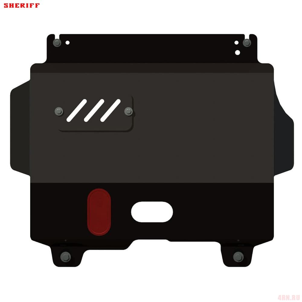 Защита картера Sheriff нужна для сохранности узлов и агрегатов, находящихся на днище авто. Она надежно защитит двигательный отсек вашей машины от повреждений. Также она защищает моторный отсек от влаги, грязи, и предусматривает наличие металлических крыльев, которые выполняют функцию пыльника.
