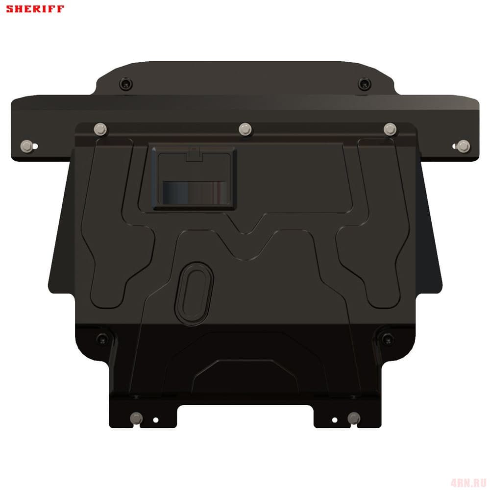 Защита картера Sheriff нужна для сохранности узлов и агрегатов, находящихся на днище авто. Она надежно защитит двигательный отсек вашей машины от повреждений. Также она защищает моторный отсек от влаги, грязи, и предусматривает наличие металлических крыльев, которые выполняют функцию пыльника.