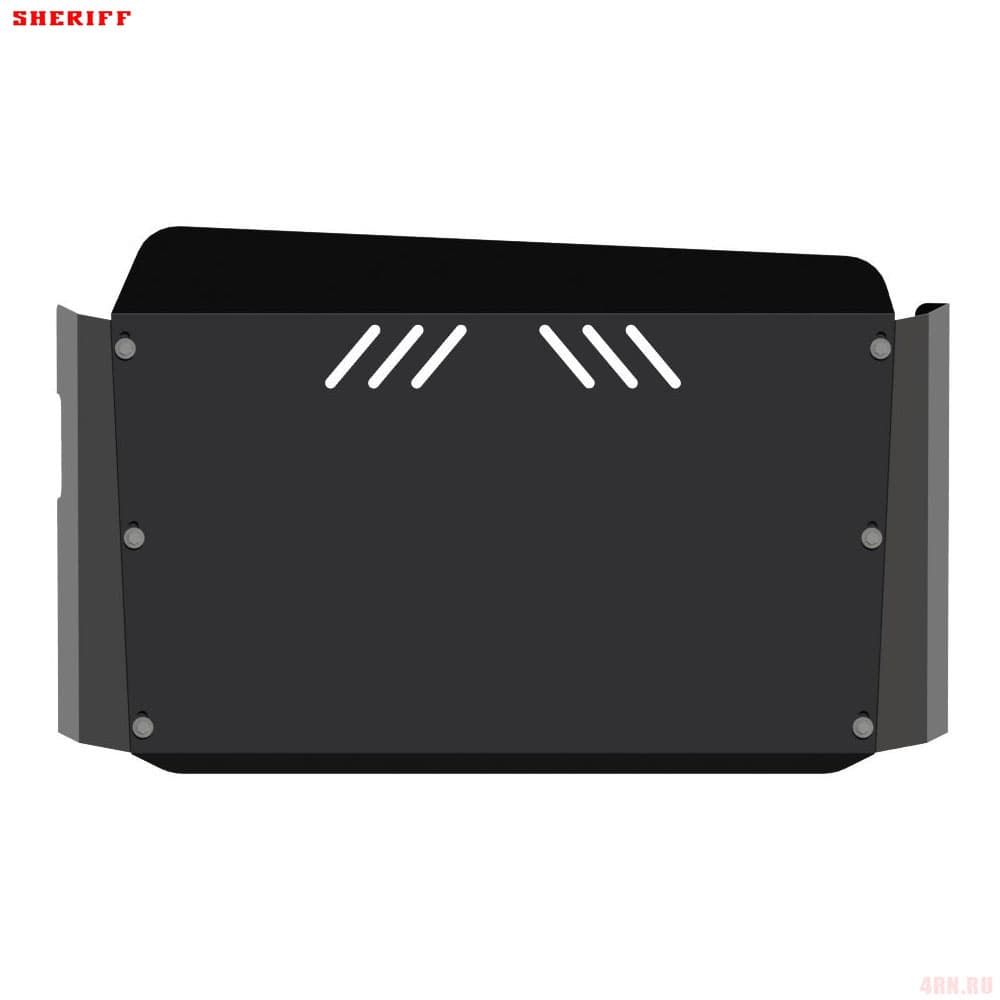 Защита картера Sheriff нужна для сохранности узлов и агрегатов, находящихся на днище авто. Она надежно защитит двигательный отсек вашей машины от повреждений. Также она защищает моторный отсек от влаги, грязи, и предусматривает наличие металлических крыльев, которые выполняют функцию пыльника.
