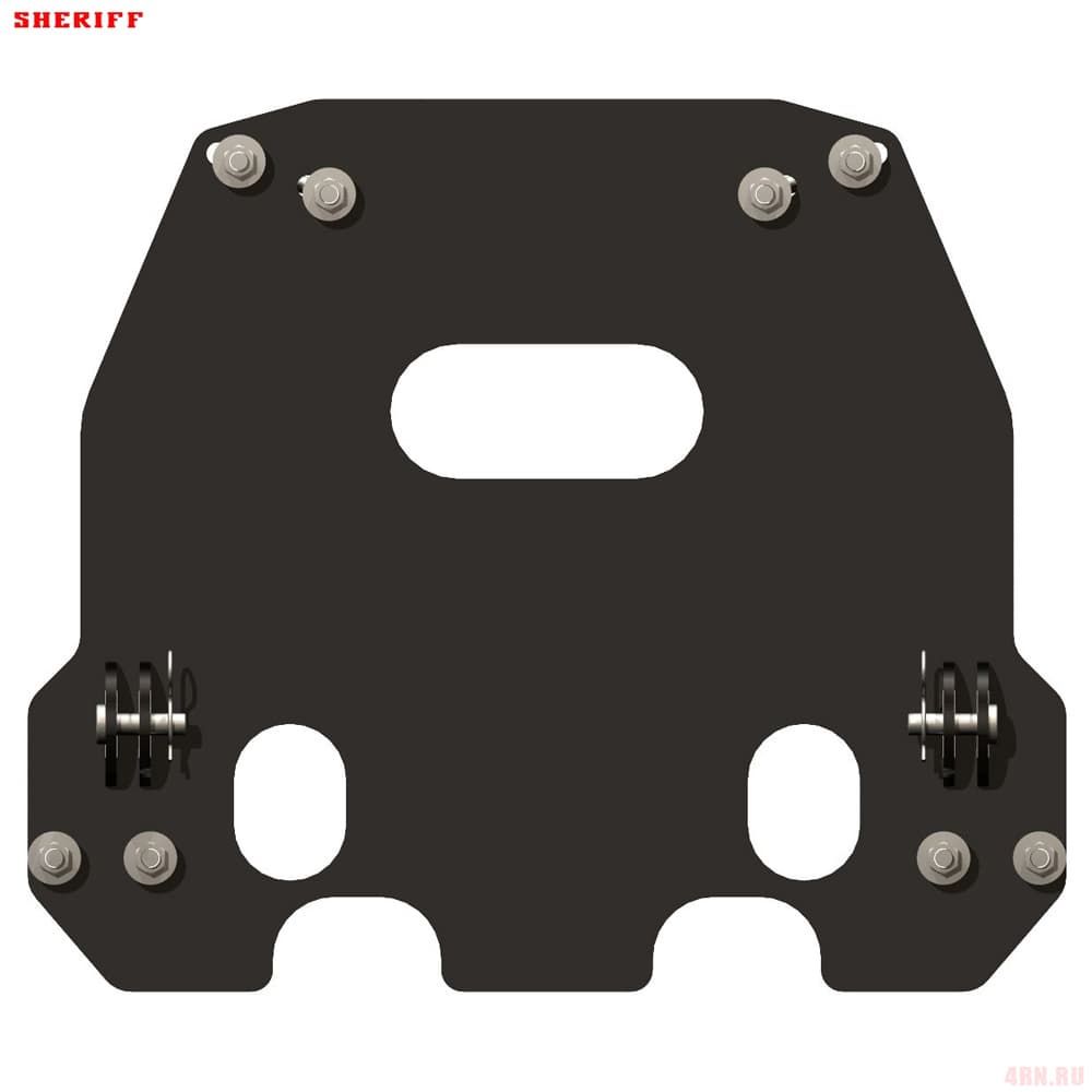 Защита картера Sheriff нужна для сохранности узлов и агрегатов, находящихся на днище авто. Она надежно защитит двигательный отсек вашей машины от повреждений. Также она защищает моторный отсек от влаги, грязи, и предусматривает наличие металлических крыльев, которые выполняют функцию пыльника.