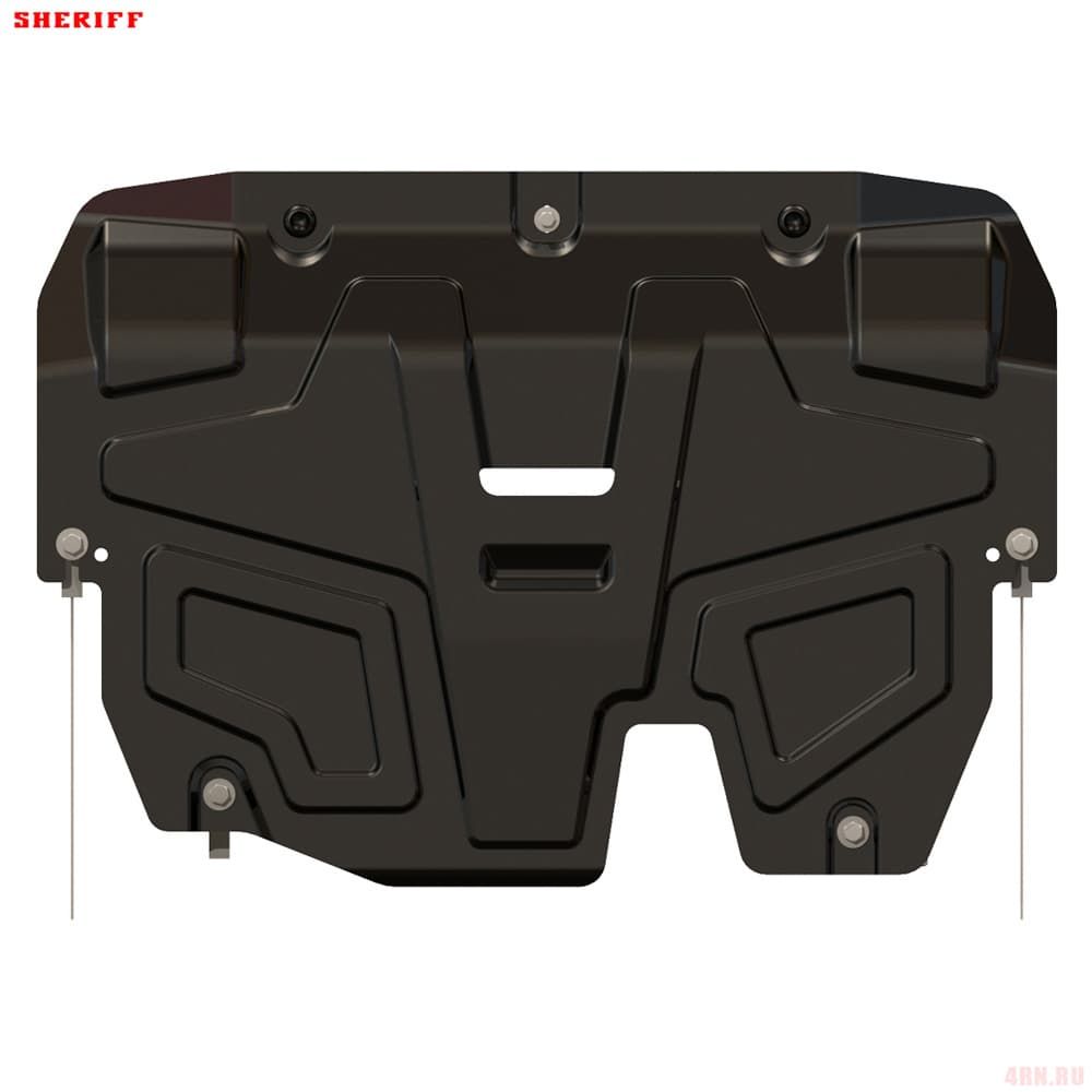 Защита картера Sheriff нужна для сохранности узлов и агрегатов, находящихся на днище авто. Она надежно защитит двигательный отсек вашей машины от повреждений. Также она защищает моторный отсек от влаги, грязи, и предусматривает наличие металлических крыльев, которые выполняют функцию пыльника.