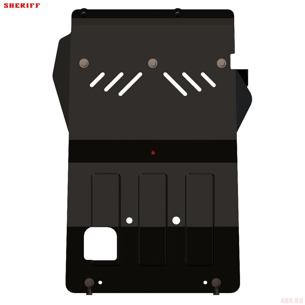 Защита картера Sheriff нужна для сохранности узлов и агрегатов, находящихся на днище авто. Она надежно защитит двигательный отсек вашей машины от повреждений. Также она защищает моторный отсек от влаги, грязи, и предусматривает наличие металлических крыльев, которые выполняют функцию пыльника.