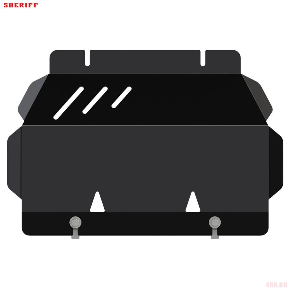 Защита картера Sheriff нужна для сохранности узлов и агрегатов, находящихся на днище авто. Она надежно защитит двигательный отсек вашей машины от повреждений. Также она защищает моторный отсек от влаги, грязи, и предусматривает наличие металлических крыльев, которые выполняют функцию пыльника.