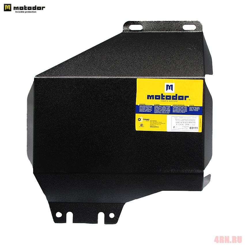 Защита двигателя и кпп артикул 03111 от российского производителя Мотодор. Разработана специально для автомобиля Great Wall Hover 2005-2010. Крепеж поставляется в комплекте. Стали толщиной 2,0 мм достаточно для городских и загородных условий дорог.