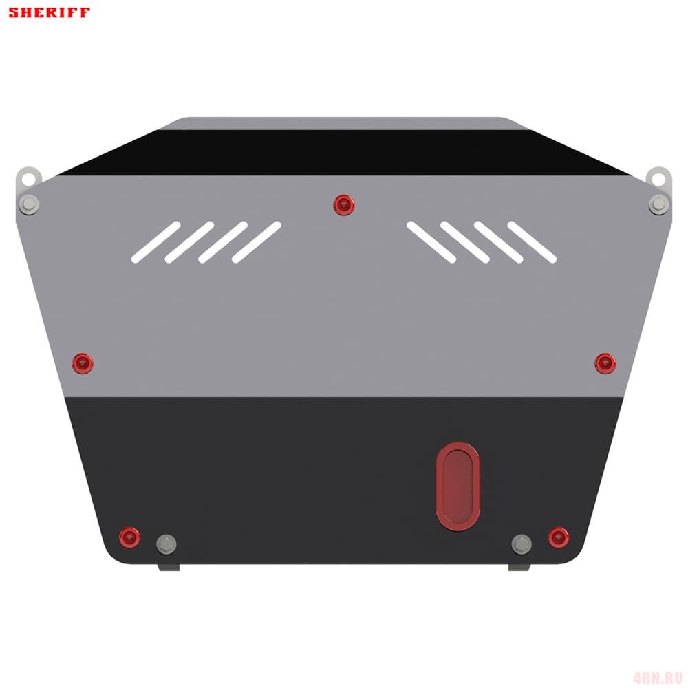 Защита картера Sheriff нужна для сохранности узлов и агрегатов, находящихся на днище авто. Она надежно защитит двигательный отсек вашей машины от повреждений. Также она защищает моторный отсек от влаги, грязи, и предусматривает наличие металлических крыльев, которые выполняют функцию пыльника.