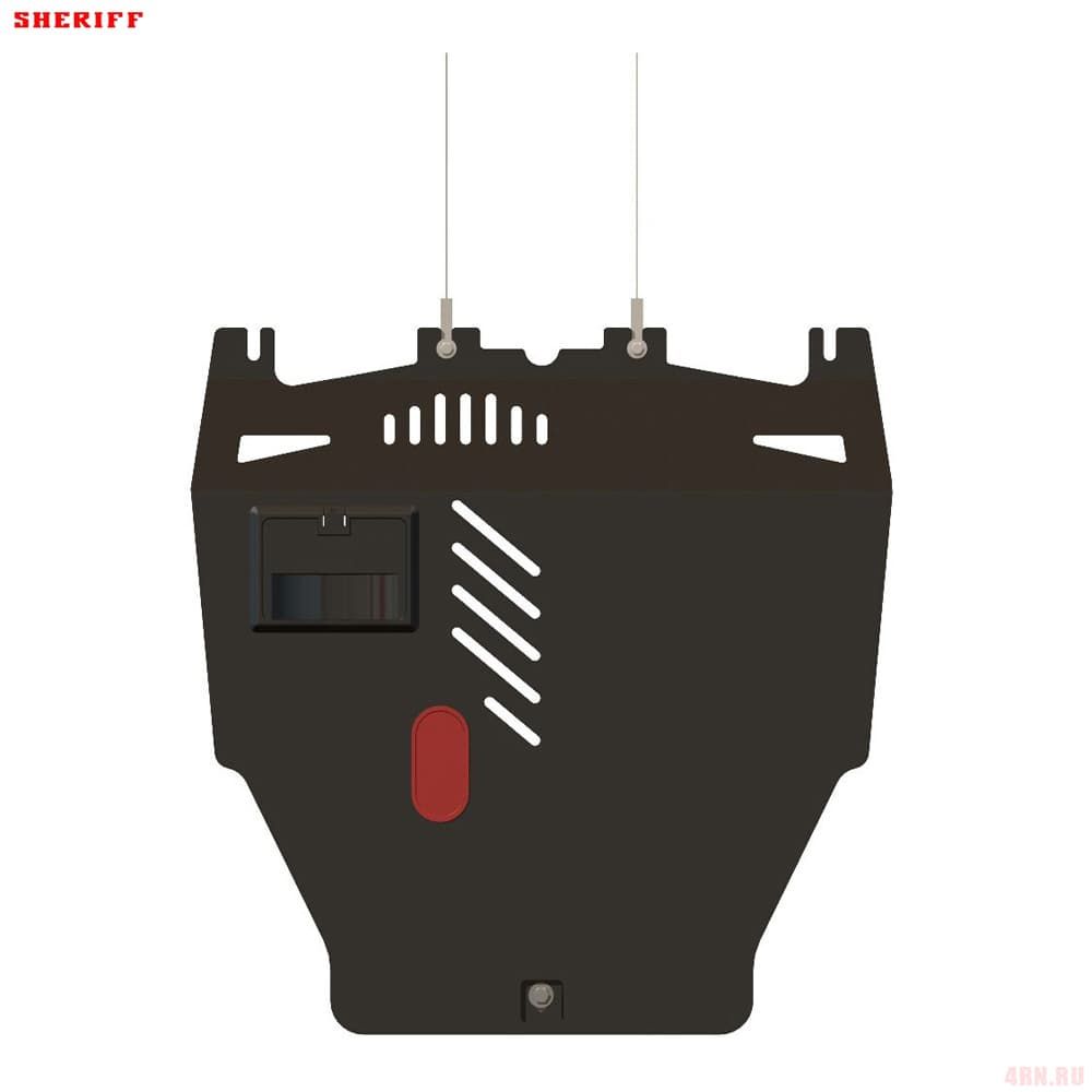Защита картера Sheriff нужна для сохранности узлов и агрегатов, находящихся на днище авто. Она надежно защитит двигательный отсек вашей машины от повреждений. Также она защищает моторный отсек от влаги, грязи, и предусматривает наличие металлических крыльев, которые выполняют функцию пыльника.