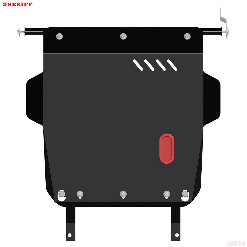 Защита картера Sheriff нужна для сохранности узлов и агрегатов, находящихся на днище авто. Она надежно защитит двигательный отсек вашей машины от повреждений. Также она защищает моторный отсек от влаги, грязи, и предусматривает наличие металлических крыльев, которые выполняют функцию пыльника.