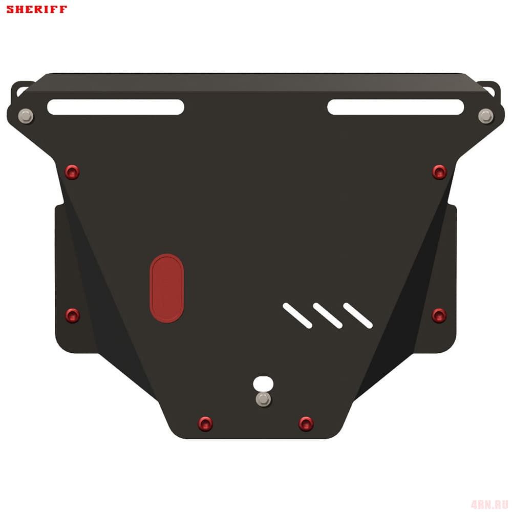 Защита картера Sheriff нужна для сохранности узлов и агрегатов, находящихся на днище авто. Она надежно защитит двигательный отсек вашей машины от повреждений. Также она защищает моторный отсек от влаги, грязи, и предусматривает наличие металлических крыльев, которые выполняют функцию пыльника.