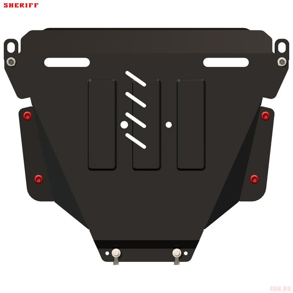 Защита картера Sheriff нужна для сохранности узлов и агрегатов, находящихся на днище авто. Она надежно защитит двигательный отсек вашей машины от повреждений. Также она защищает моторный отсек от влаги, грязи, и предусматривает наличие металлических крыльев, которые выполняют функцию пыльника.