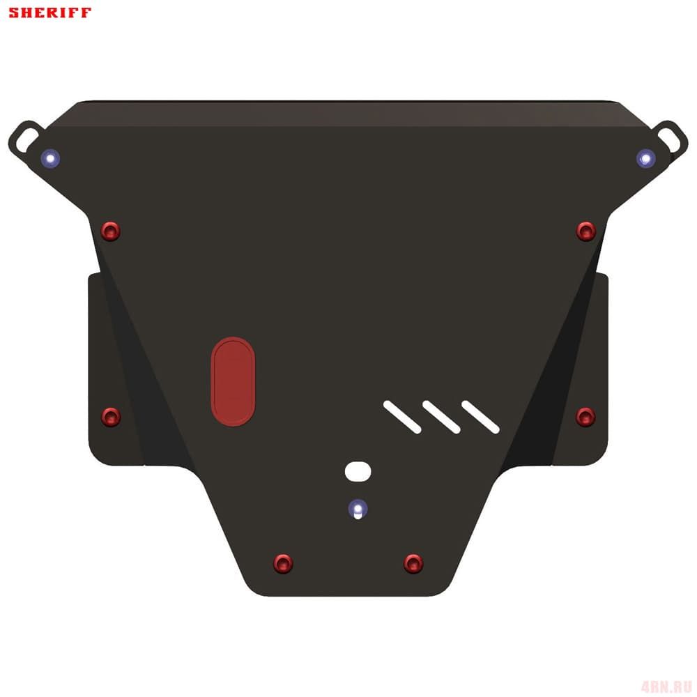 Защита картера Sheriff нужна для сохранности узлов и агрегатов, находящихся на днище авто. Она надежно защитит двигательный отсек вашей машины от повреждений. Также она защищает моторный отсек от влаги, грязи, и предусматривает наличие металлических крыльев, которые выполняют функцию пыльника.