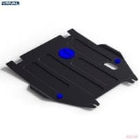 Порошковое окрашивание гарантирует долгий срок службы. А глубокий штамп увеличивает жесткость до 2,5 раз. Также имеется утопленный крепеж для предотвращения срывов. Качественная покраска защиты картера выдерживает 720 часов соляного тумана. Толщина изделия составляет 2-6 мм. Подштамповка в местах крепления предохраняет крепеж от срезания. Деталь спроектирована индивидуально для вашего автомобиля, что позволяет устанавливать ее в штатные места без доработки кузова за 10 мин.