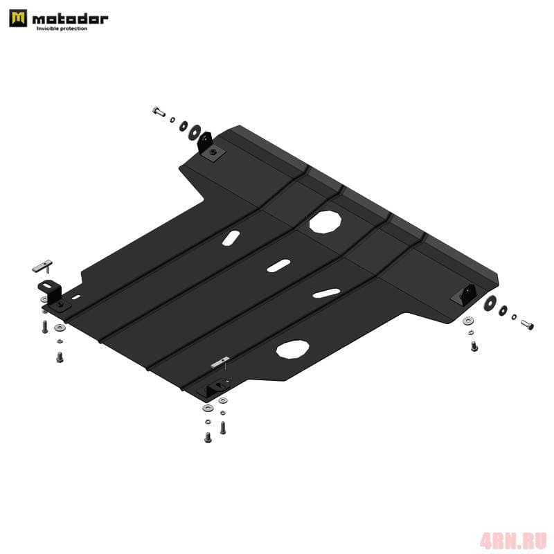 Защита двигателя и кпп артикул 00904 от российского производителя Мотодор. Разработана специально для автомобиля Hyundai Coupe . Крепеж поставляется в комплекте. Стали толщиной 2,0 мм достаточно для городских и загородных условий дорог.