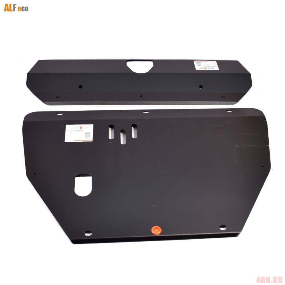 Защита для двигателя и кпп от производителя ALFeco, состоит из 2 листа и крепежа, материал - сталь толщиной 2.0 мм, подходит для автомобилей с двигателем объемом - 1.6, привод - все, кпп - все. Отверстие для слива масла и смены фильтра - нет.