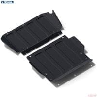 Порошковое окрашивание гарантирует долгий срок службы. А глубокий штамп увеличивает жесткость до 2,5 раз. Также имеется утопленный крепеж для предотвращения срывов. Качественная покраска защиты картера выдерживает 720 часов соляного тумана. Толщина изделия составляет 2-6 мм. Подштамповка в местах крепления предохраняет крепеж от срезания. Деталь спроектирована индивидуально для вашего автомобиля, что позволяет устанавливать ее в штатные места без доработки кузова за 10 мин.