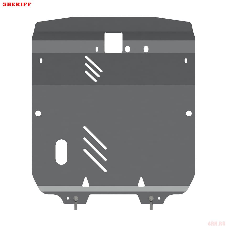 Защита картера Sheriff нужна для сохранности узлов и агрегатов, находящихся на днище авто. Она надежно защитит двигательный отсек вашего автомобиля от повреждений. Также она защищает моторный отсек от влаги и грязи, и предусматривает наличие металлических крыльев, которые выполняют функцию пыльника.
