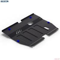 Порошковое окрашивание гарантирует долгий срок службы. А глубокий штамп увеличивает жесткость до 2,5 раз. Также имеется утопленный крепеж для предотвращения срывов. Качественная покраска защиты картера выдерживает 720 часов соляного тумана. Толщина изделия составляет 2-6 мм. Подштамповка в местах крепления предохраняет крепеж от срезания. Деталь спроектирована индивидуально для вашего автомобиля, что позволяет устанавливать ее в штатные места без доработки кузова за 10 мин.
