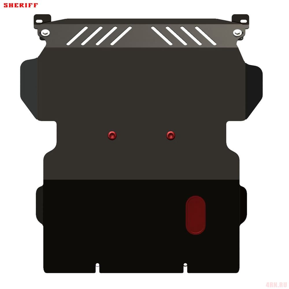 Защита картера Sheriff нужна для сохранности узлов и агрегатов, находящихся на днище авто. Она надежно защитит двигательный отсек вашей машины от повреждений. Также она защищает моторный отсек от влаги, грязи, и предусматривает наличие металлических крыльев, которые выполняют функцию пыльника.