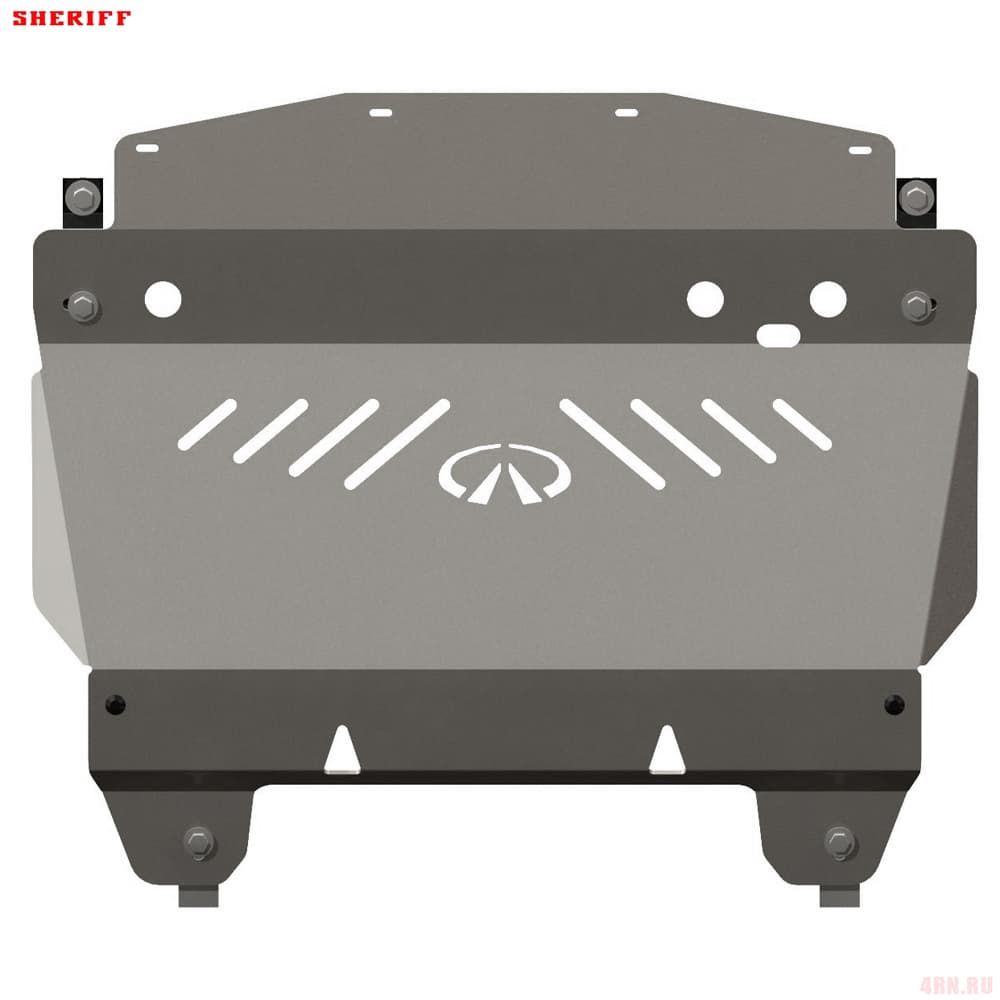 Алюминиевая защита двигателя с крепежом в комплекте, артикул 15.1044 от российского производителя Шериф. Разработана специально для автомобиля Инфинити М 2006-2010.