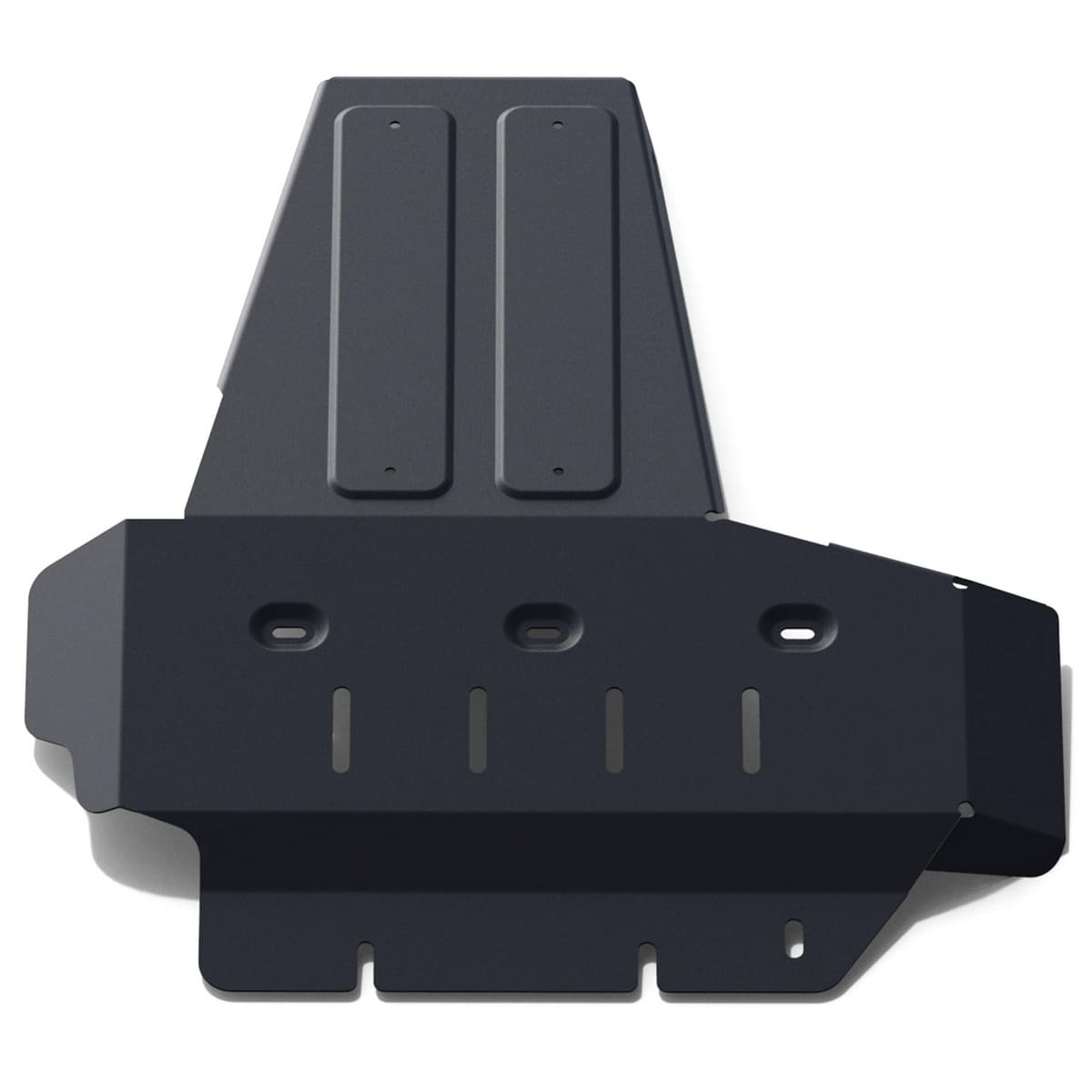 Порошковое окрашивание гарантирует долгий срок службы. А глубокий штамп увеличивает жесткость до 2,5 раз. Также имеется утопленный крепеж для предотвращения срывов. Качественная покраска защиты картера выдерживает 720 часов соляного тумана. Толщина изделия составляет 2-6 мм. Подштамповка в местах крепления предохраняет крепеж от срезания. Деталь спроектирована индивидуально для вашего автомобиля, что позволяет устанавливать ее в штатные места без доработки кузова за 10 мин.