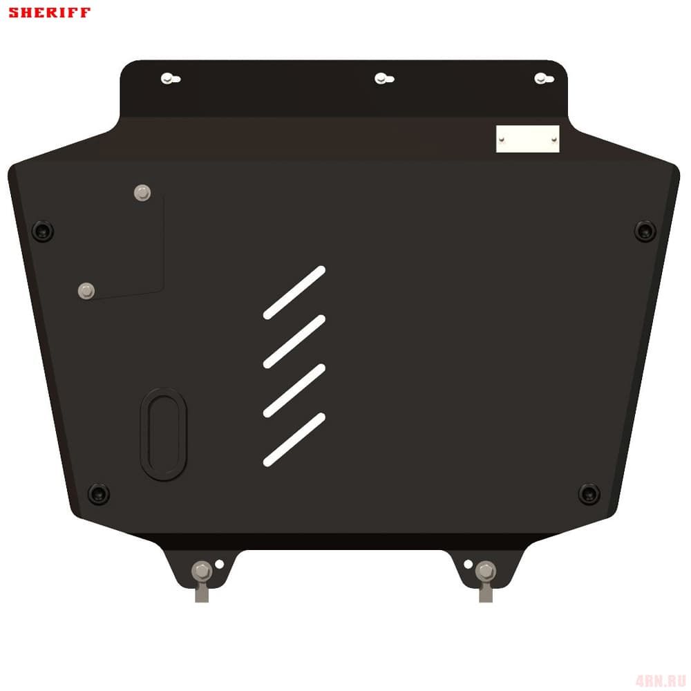 Защита картера Sheriff нужна для сохранности узлов и агрегатов, находящихся на днище авто. Она надежно защитит двигательный отсек вашей машины от повреждений. Также она защищает моторный отсек от влаги, грязи, и предусматривает наличие металлических крыльев, которые выполняют функцию пыльника.