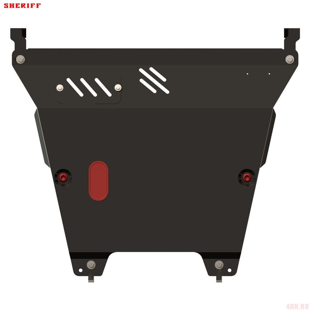Защита картера Sheriff нужна для сохранности узлов и агрегатов, находящихся на днище авто. Она надежно защитит двигательный отсек вашей машины от повреждений. Также она защищает моторный отсек от влаги, грязи, и предусматривает наличие металлических крыльев, которые выполняют функцию пыльника.